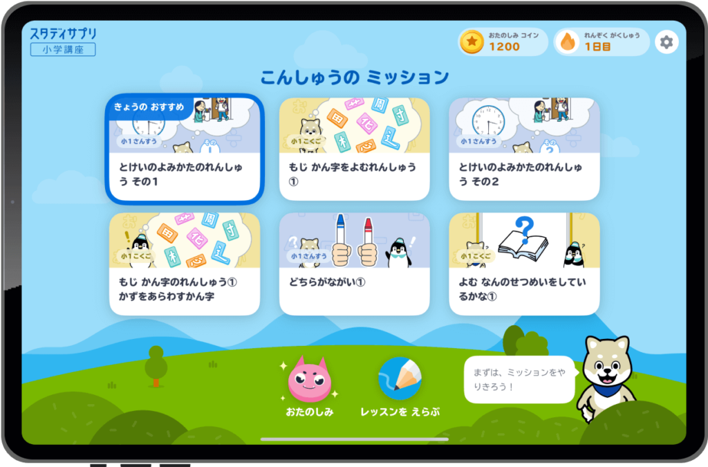 今日どの学習をすればいいのか一目でわかる、ミッション機能を搭載