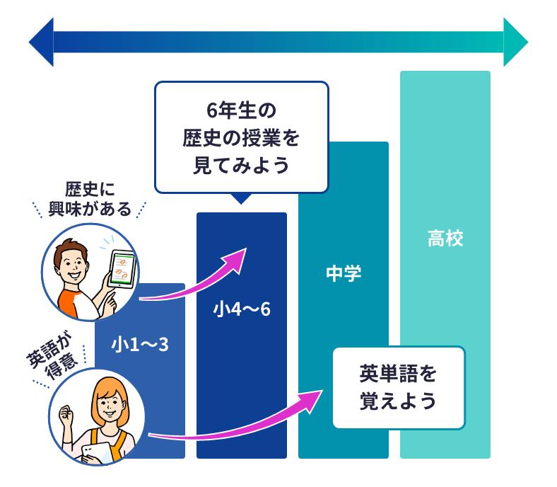 小学1年生から6年生までの全学年に対応しており、学年を超えて学び放題です。
